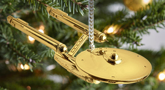 And that was by no means the only golden anniversary golden Enterprise. Hallmark also released a gold version of the piolet-episode variant of the Enterprise as a Keepsakes Christmas tree decoration(ad) (weirdly the normal on-screen colours version of the same model was only offered as a convention exclusive variant(ad)):